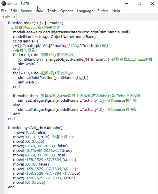 軸如果有跑出驚嘆號可以先把軸改成被動模式,因為我的圖只有3個軸(沒有吸盤的旋轉軸),有那個也沒用所以沒有新增,但是lua程式要做修改